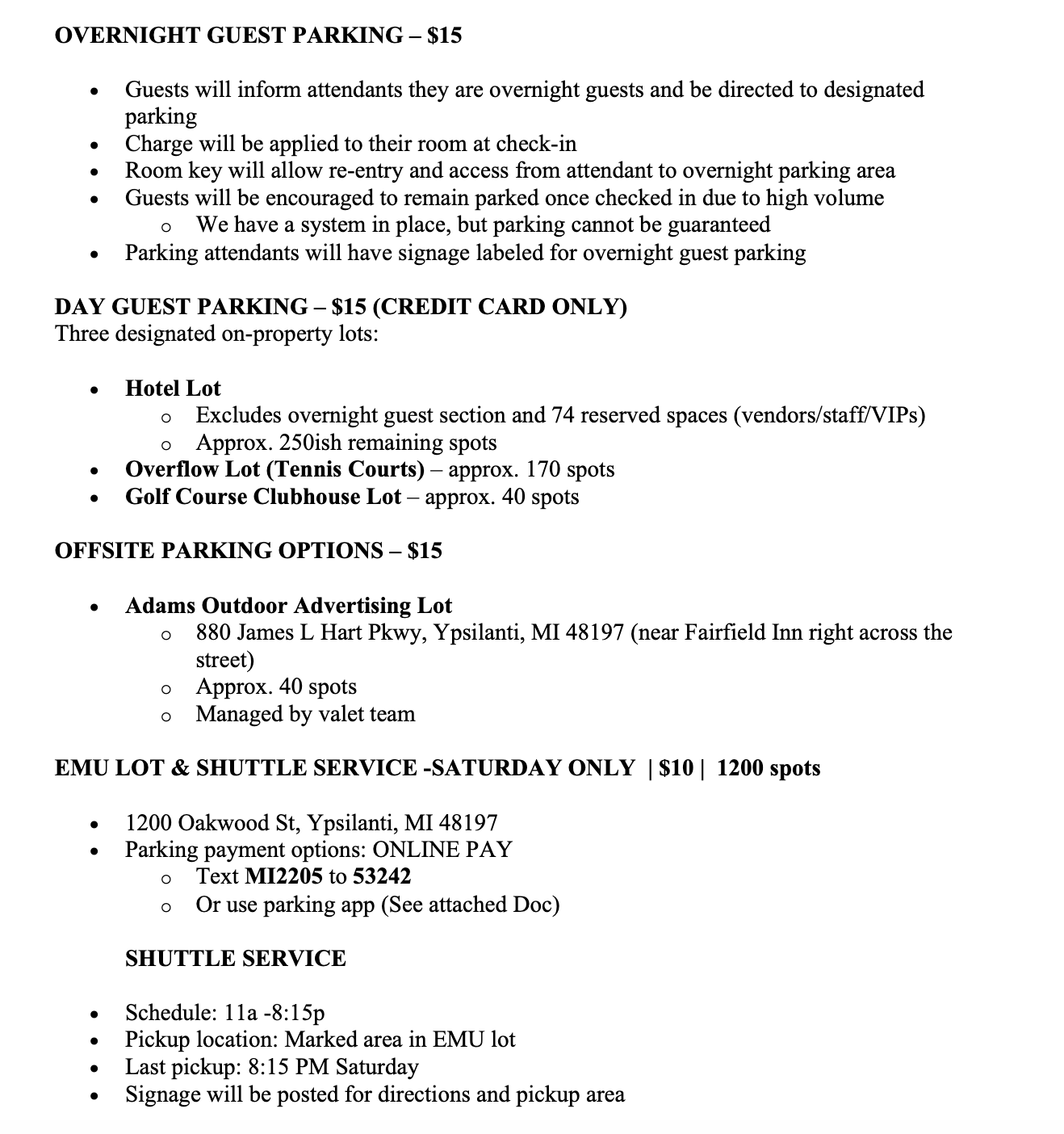 PARKING UPDATES BELOW!!!!